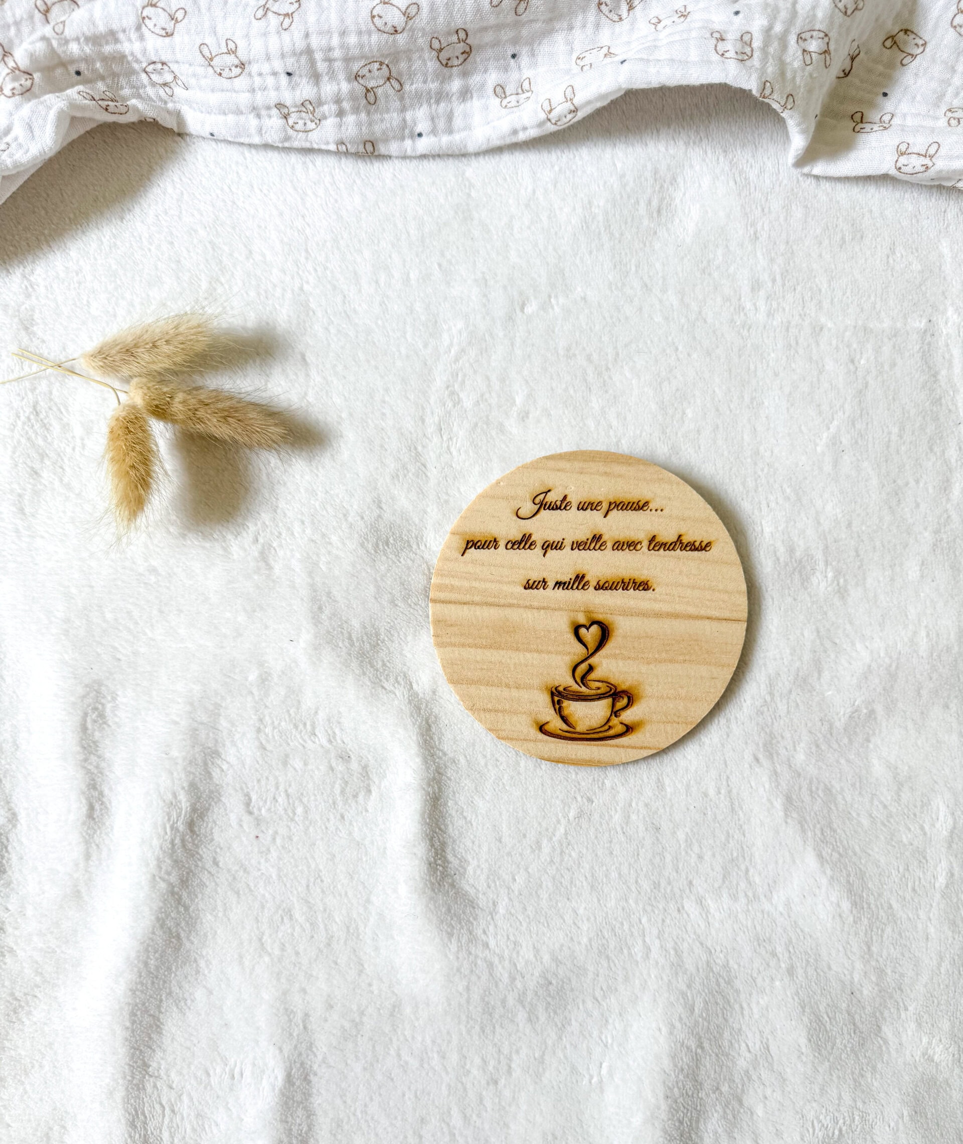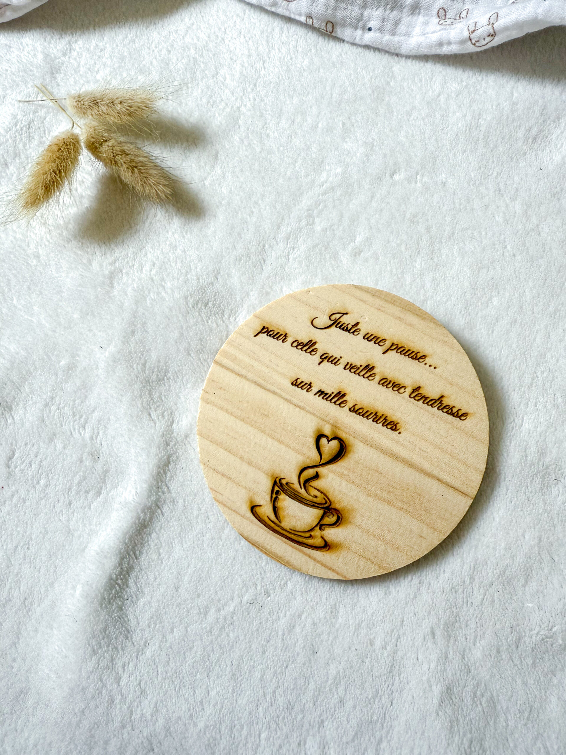 Sous tasse en bois personnalisée avec citation
